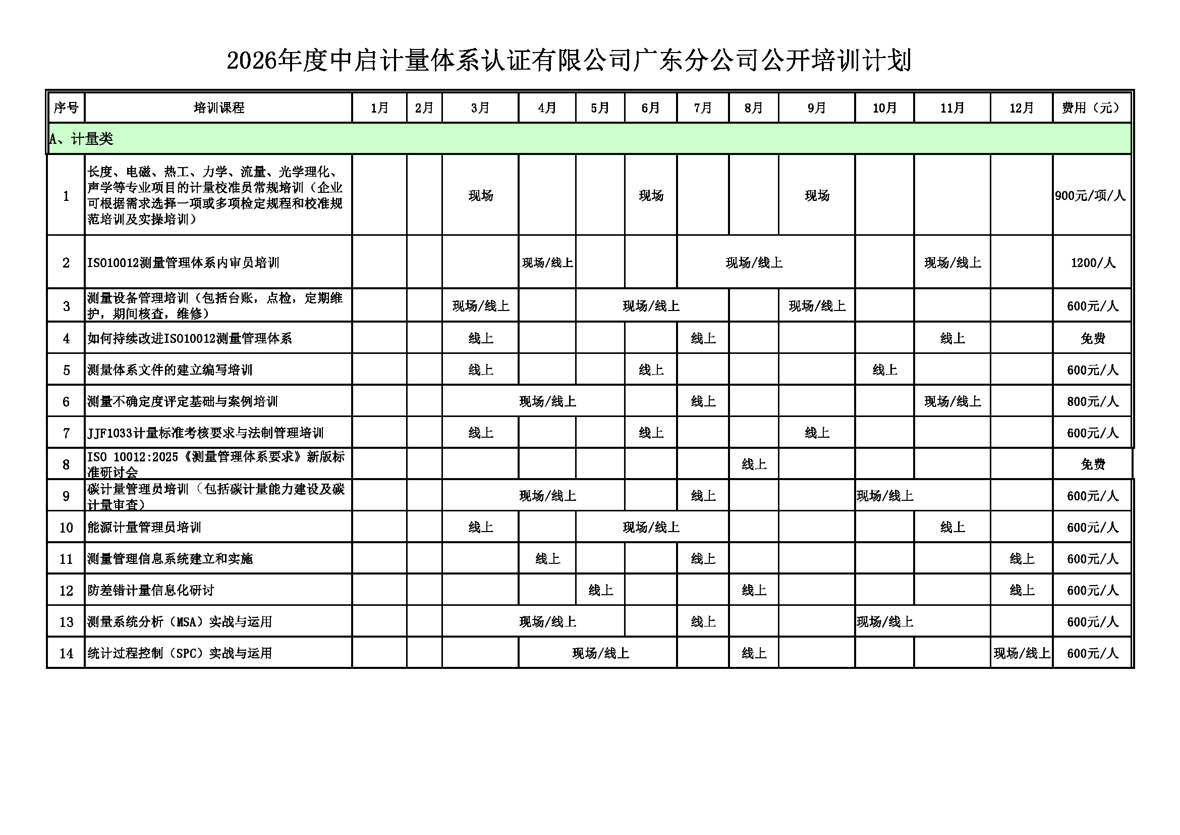 2026年度中启计量认证有限公司广东分公司公开课培训计划